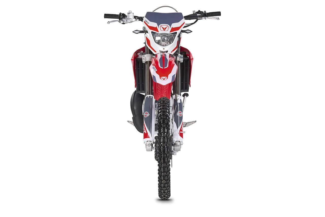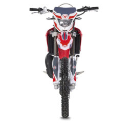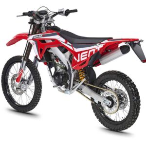 Die BAJA RR 50 wurde mit dem technischen Know-how und der Erfahrung aus über dreißig Jahren internationalem Offroad‑Rennsport entwickelt und gebaut. Sie überzeugt mit einer exklusiven Ausstattung und einer Vielzahl raffinierter, fortschrittlicher technischer Lösungen, die sie in ihrer Kategorie einzigartig machen. Der umlaufende Rahmen sowie die Schwinge aus Aluminium reduzieren das Gewicht und sorgen für maximale Stabilität und Agilität. Für kompromisslose Verzögerung sorgt das überdimensionierte Bremssystem des italienischen Herstellers BCA, das auch unter härtesten Bedingungen höchste Performance garantiert. Das Fahrwerk ist klar auf sportlichen Einsatz ausgelegt: Die 41‑mm‑Upside‑Down‑Gabel sowie das neue HM‑Link‑Monofederbein sind vollständig einstellbar und ermöglichen eine präzise Abstimmung auf Fahrer, Strecke und Einsatzbereich. Diese Eigenschaften machen die BAJA RR 50 unter allen Fahrbedingungen zu einem echten Spitzenmodell: auf der Straße, wenn der Einsatz kontrolliert und regelkonform erfolgt, ebenso wie im Gelände, wenn der volle Racing‑Charakter entfesselt wird und das Motorrad auf seinem bevorzugten Terrain seine Stärken ausspielt. Abgerundet wird die Ausstattung durch den 28‑mm‑Lenker im Black Finish mit speziellen Lenkerklemmen sowie die exklusive Grafik, die an die Farben des offiziellen VENT‑Enduro‑Teams erinnert und den kompromisslosen Wettbewerbscharakter unterstreicht.