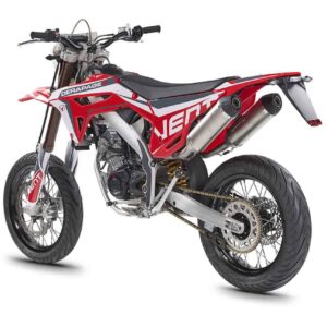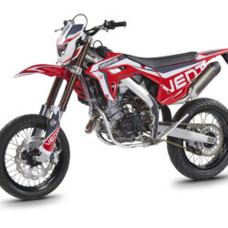 Die neue DERAPAGE RR 125 ist ein hochmodernes, technisch anspruchsvolles und kompromisslos leistungsorientiertes Motorrad – kurz gesagt: ein echtes Exklusivmodell. Herzstück dieses Modells ist der brandneue Minarelli 125‑cm³‑Viertaktmotor mit Euro‑5‑Homologation. Das brillante und extrem zuverlässige Aggregat ist mit einem variablen Ventilsteuersystem ausgestattet und sorgt für eine kraftvolle, gleichzeitig kontrollierbare Leistungsentfaltung. Das Fahrwerk unterstreicht den Premium-Anspruch der RR-Version: Der VENT‑6.0‑Doppelschleifenrahmen mit zerlegbarem Hinterbau sowie die Aluminium-Schwinge bieten maximale Stabilität bei geringem Gewicht. Ergänzt wird dies durch eine hydraulische 41‑mm-Upside‑Down-Gabel mit R16V-Standrohren sowie ein hydraulisches Monofederbein mit HM-Umlenkung, das in Vorspannung und Zugstufe einstellbar ist – exklusive Ausstattungsmerkmale der RR‑Version. Für höchste Sicherheit sorgt das neue, leistungsstarke BCA-Bremssystem, unterstützt durch ein CBS-Bremskraftverteilungssystem, während die Anti‑Hopping‑Kupplung ein stabiles und kontrolliertes Fahrverhalten auch bei sportlicher Gangart garantiert. So präsentiert sich die DERAPAGE RR 125 als Motorrad der Spitzenklasse: leicht zu handhaben, souverän auf der Straße und bereit, unvergessliche Fahrerlebnisse zu schaffen. Abgerundet wird die Serienausstattung durch den markanten Doppelschalldämpfer sowie den edlen 28‑mm-Lenker in Black Finish mit speziellen Lenkerklemmen.